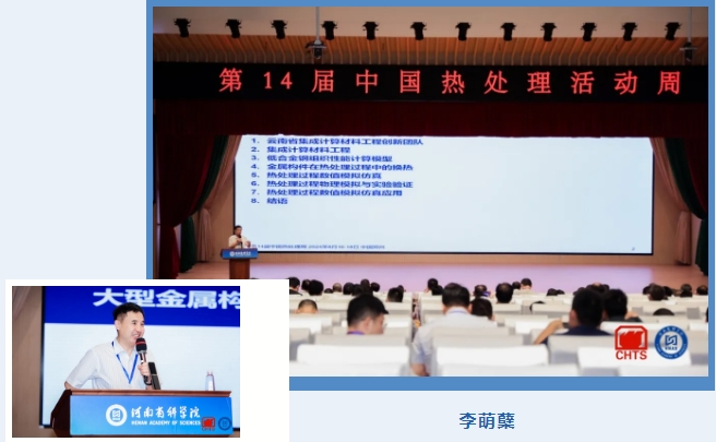 昆明理工大學(xué)李萌蘗教授作題為《大型金屬構(gòu)件熱處理工藝集成計(jì)算材料工程研究》的報(bào)告,他介紹了集成計(jì)算材料工程在大型金屬構(gòu)件熱處理工藝過程的應(yīng)用,通過多物理場耦合模擬仿真揭示大型金屬構(gòu)件在熱處理工藝過程中的溫度場、組織性能演變、應(yīng)力與變形過程。