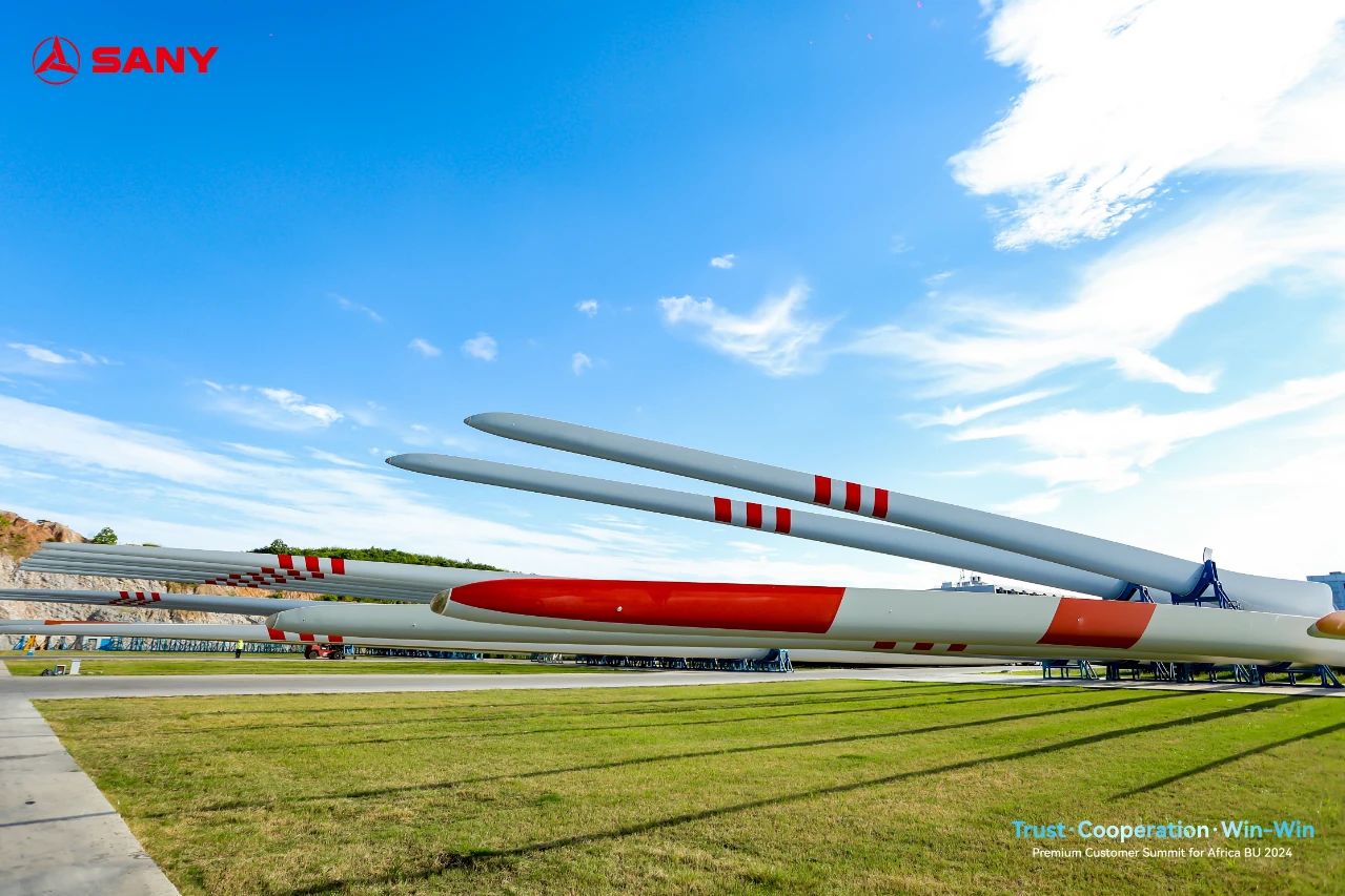 三一重能韶山葉片工廠擁有亞洲最大的單體風電葉片生產車間,生產流線長度將近600米,可容納12套模具同時生產,每年可生產風電葉片3000支。2023年,104米陸上風機葉片在三一重能韶山葉片工廠下線,刷新當時全球最長陸上風電葉片紀錄。