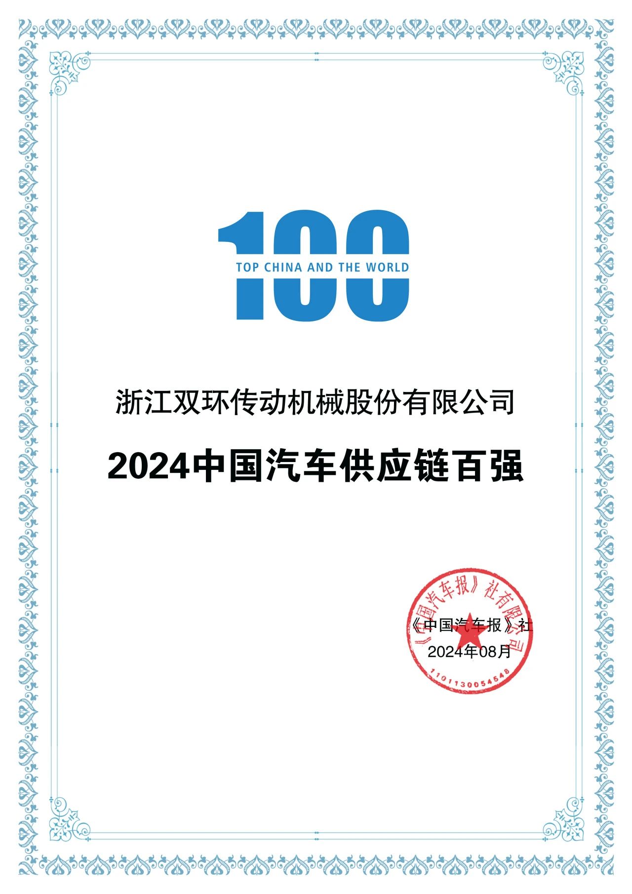 近日,由《中國(guó)汽車報(bào)》社和羅蘭貝格聯(lián)合編制的《2024全球汽車供應(yīng)鏈核心企業(yè)競(jìng)爭(zhēng)力白皮書》正式發(fā)布,揭曉了2024中國(guó)汽車供應(yīng)鏈百?gòu)?qiáng)榜單,雙環(huán)傳動(dòng)榮登榜單。這是雙環(huán)繼2023年獲得該項(xiàng)殊榮后再度登榜。