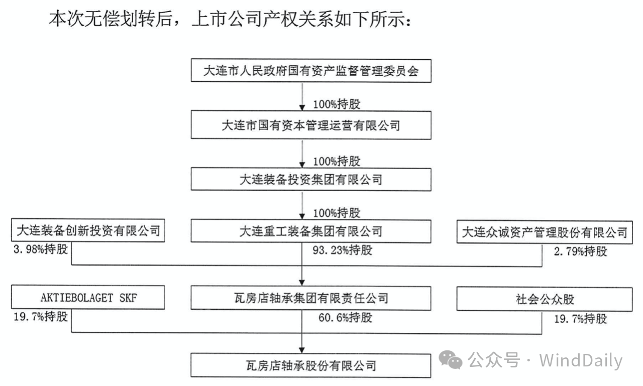據悉,經遼寧大連市委市政府同意,瓦軸集團93.2344%股權將無償劃轉給大連重工。這意味著大連重工將并購瓦軸,大連市兩大風電龍頭將合二為一。兩者同屬大連國資委旗下,不涉及其他批準程序;同是上市公司,需履行上市公司相關義務。詳情如下: