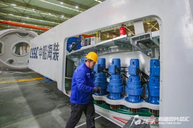據介紹,中船海裝風電有限公司開發的10兆瓦陸上風力發電機組,具有高經濟性、高可靠性、高發電量、高環境適應性等特點,在裝配過程中已經通過了全功率測試實驗,在滿發風速下,機組運行一年可發電近4000萬度,相當于節約標準煤約1.2萬噸,減排二氧化碳2.8萬噸,大風機的量產為“碳達峰”和“碳中和”注入了持續動力。