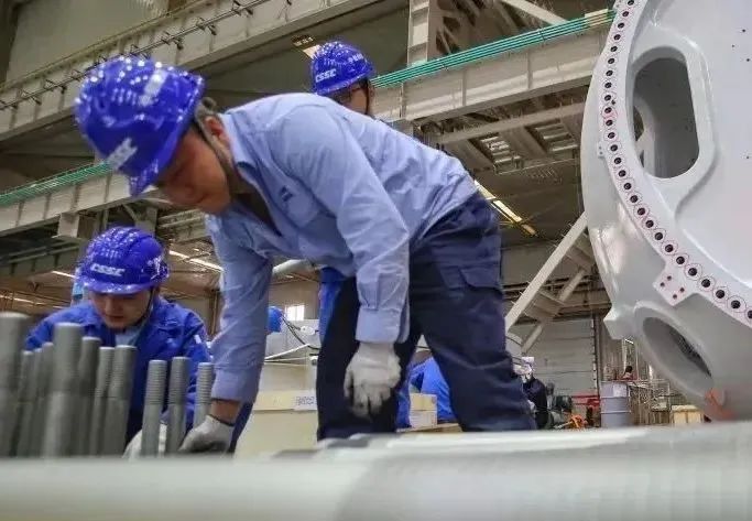 11月8日,中船海裝新疆海裝風(fēng)電設(shè)備有限公司風(fēng)機制造車間,工作人員在裝配風(fēng)電設(shè)備。