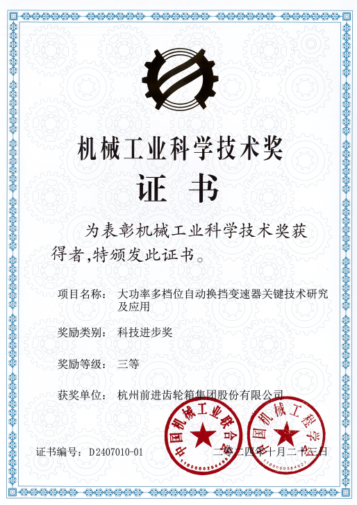 近日,中國機械工業(yè)聯(lián)合會、中國機械工程學會聯(lián)合組織的2024年度“機械工業(yè)科學技術獎”公布了獲獎名單。杭齒集團“大功率多檔位自動換擋變速器關鍵技術研究及應用”和“智能控制小傾角船用齒輪箱研發(fā)及產(chǎn)業(yè)化”兩個項目榮獲科技進步獎三等獎,這是對杭齒集團在機械工業(yè)領域所取得成果的高度肯定。