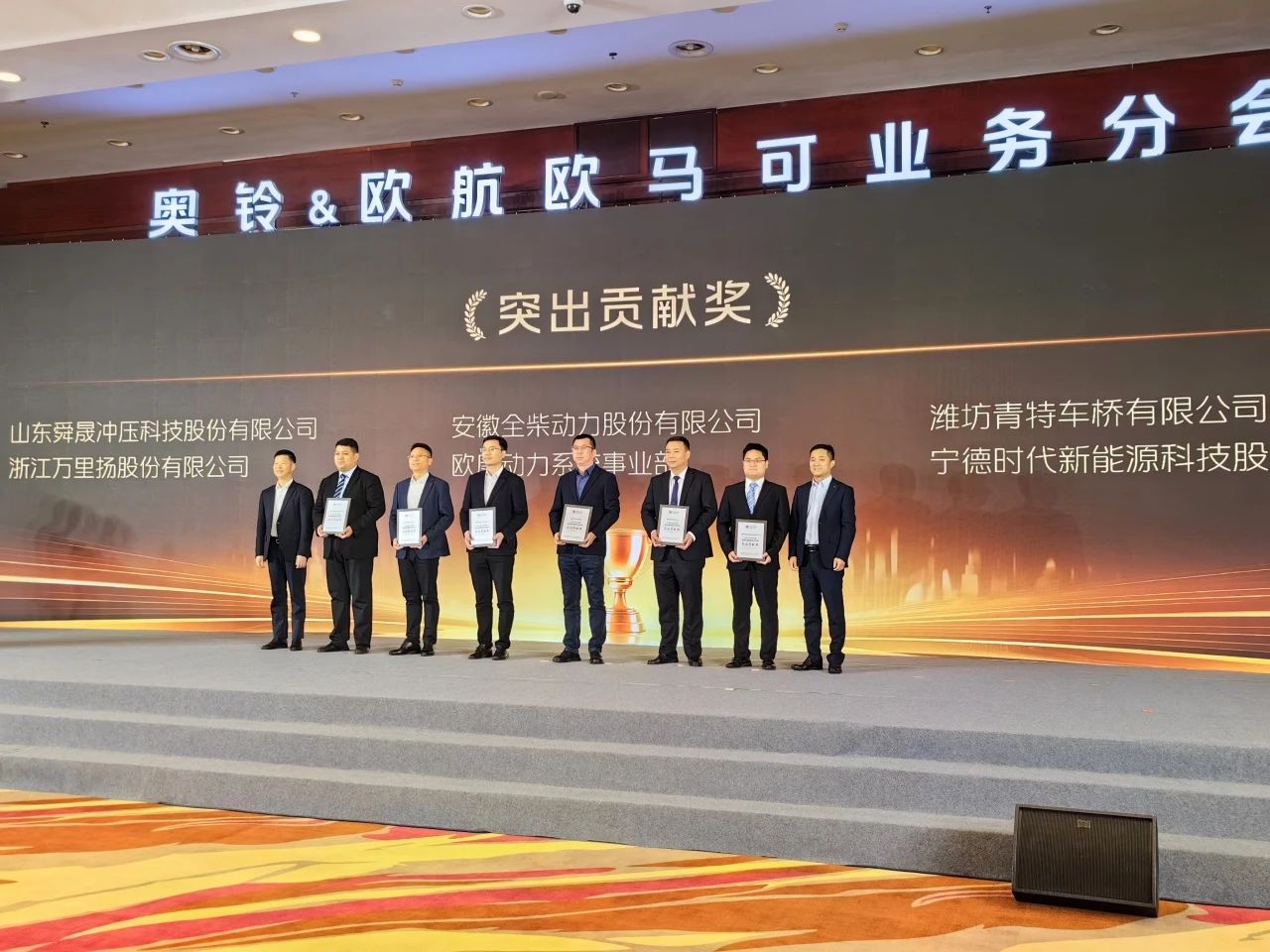 大會還為表現優異的合作伙伴頒獎,萬里揚榮膺“福田汽車合作共贏獎”“福田汽車優秀供應商”“奧鈴&歐航歐馬可突出貢獻獎”,同時王東榮獲“時代事業部最佳協作獎”。