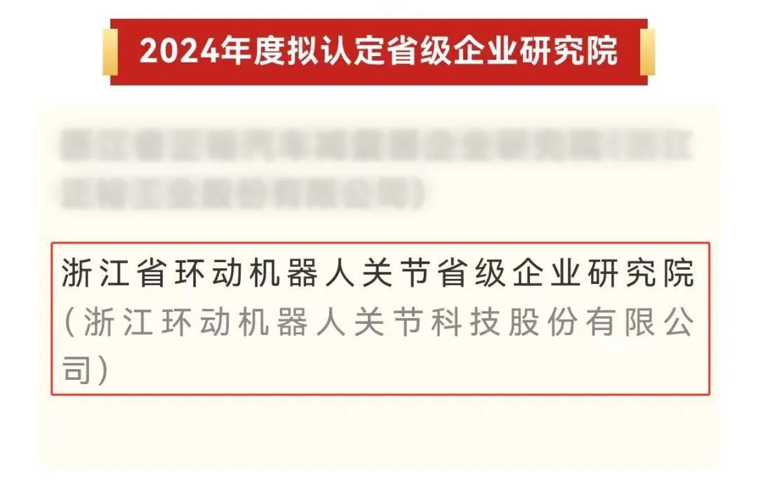 2024年12月22日,我司成功入選浙江科技廳公示2024年度省企業研究院名單,此次認定是對環動科技研發團隊、研發創新體系、技術開發能力的肯定!