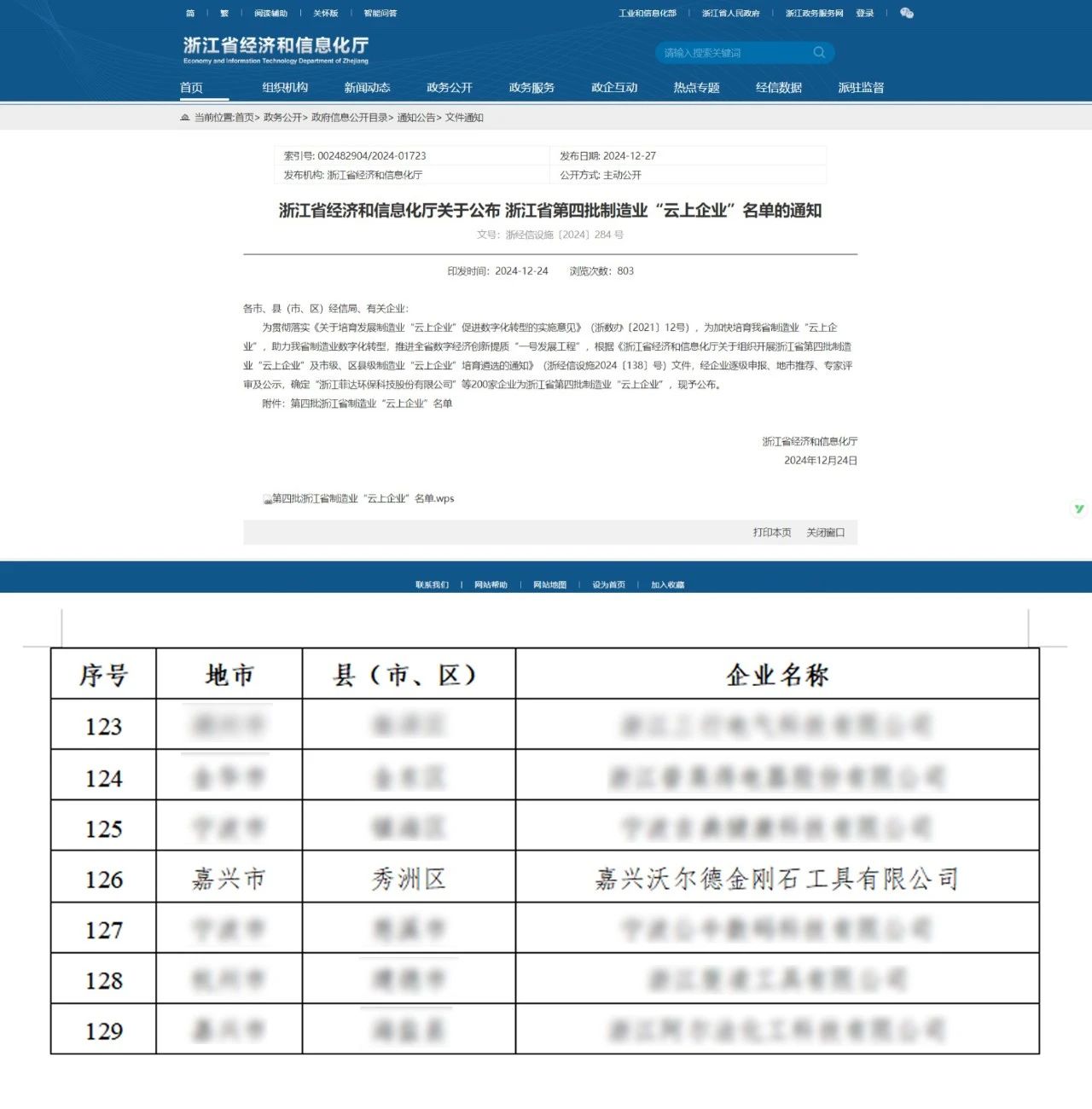 近日,浙江省經濟和信息化廳公布了第四批制造業(yè)“云上企業(yè)”名單,嘉興沃爾德金剛石工具有限公司成功入選。