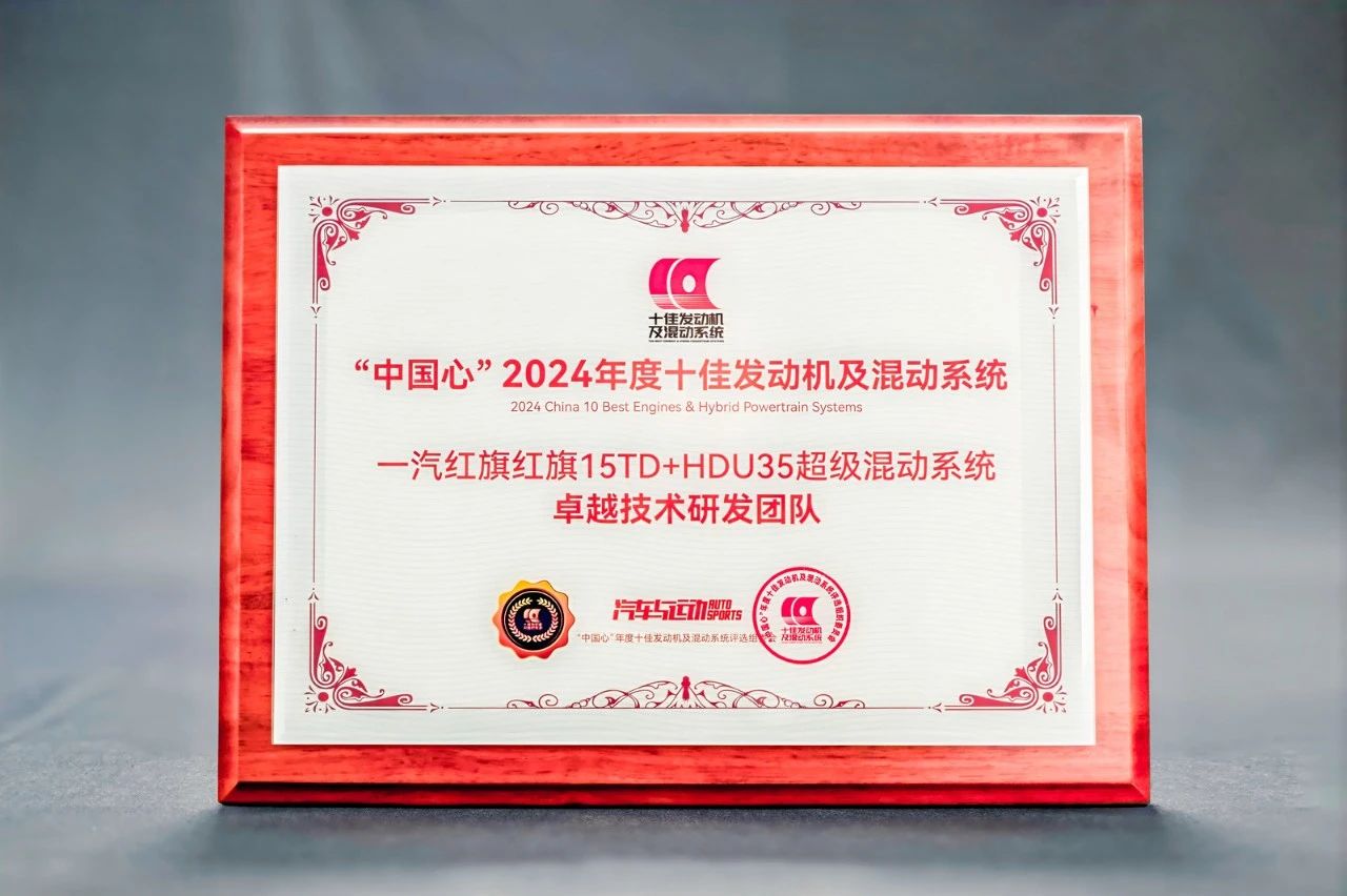 近日,紅旗15TD混動發動機研發團隊受邀參加“中國心”2025年度動力日暨第九屆中國汽車動力技術大會。會上,團隊憑借詳細的靜態講解、專業的動態體驗指導及出色的評審說明,在14家企業團隊中脫穎而出,成功榮獲“中國心”2024年度十佳發動機及混動系統“卓越技術研發團隊”稱號。研發總院發動機開發部部長曲函師作為團隊代表出席大會并作講解。