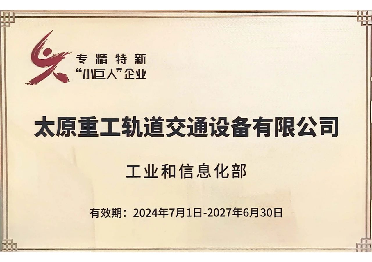 一 "小巨人"稱號背后的硬核實力“專精特新”企業是指具備專業化、精細化、特色化、新穎化特征的中小企業,而專精特新“小巨人”企業,則是“專精特新”中小企業中的佼佼者,上榜企業均是發展新質生產力的中堅力量。軌道公司成功入選第六批專精特新“小巨人”企業,這是公司繼2022年入選山西省專精特新企業后,完成的又一次榮譽進階,彰顯了公司在裝備制造領域的強勁實力和卓越地位,進一步提升了行業影響力和社會聲譽。