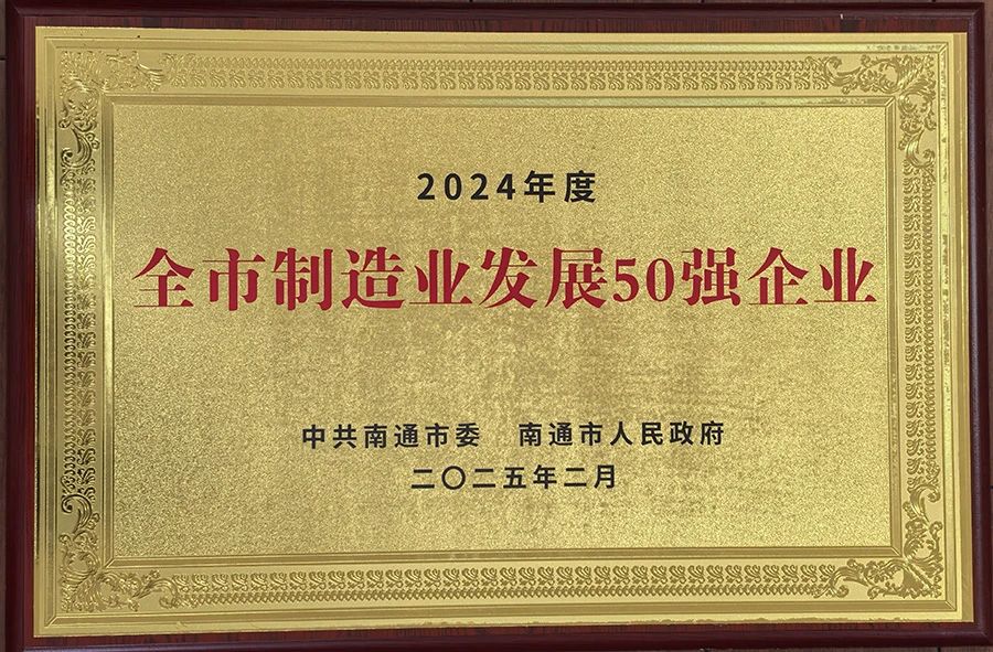 2月5日,南通市委、市政府對2024年度全市制造業發展50強等企業和新開工十大項目等項目通報表揚。在全市制造業發展50強、新增百億級制造業企業、新增國家級企業技術中心等十項企業榜單中,公司榮登全市制造業發展50強企業、新增國家級專精特新“小巨人”企業兩項榜單。