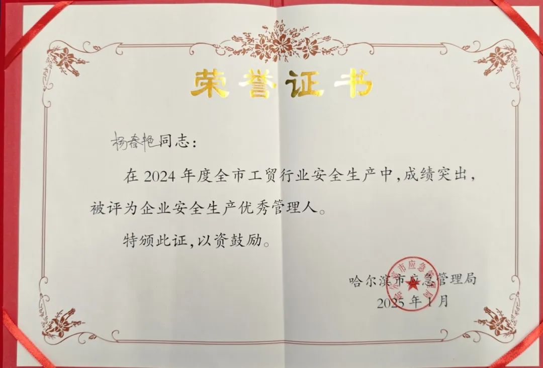 此外,哈爾濱市應(yīng)急管理局評選出10名安全生產(chǎn)優(yōu)秀管理人員,哈量公司安全環(huán)保部楊春艷榮獲“安全生產(chǎn)優(yōu)秀管理人員”稱號。