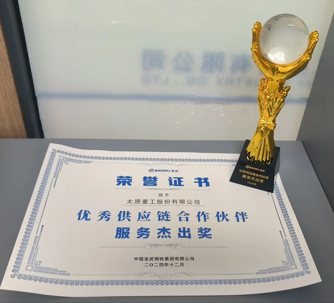 營銷中心持續深耕市場,精準定位目標用戶群體,為用戶提供最具競爭力的產品和最優質的服務。基于長期穩定優質的合作,在中國寶武鋼鐵集團有限公司主辦的2024新型低碳冶金現代產業鏈共鏈行動暨中國寶武工業品供應鏈生態伙伴大會上,太重獲得寶武鋼鐵集團有限公司頒發的“優秀供應鏈合作伙伴服務杰出獎”。