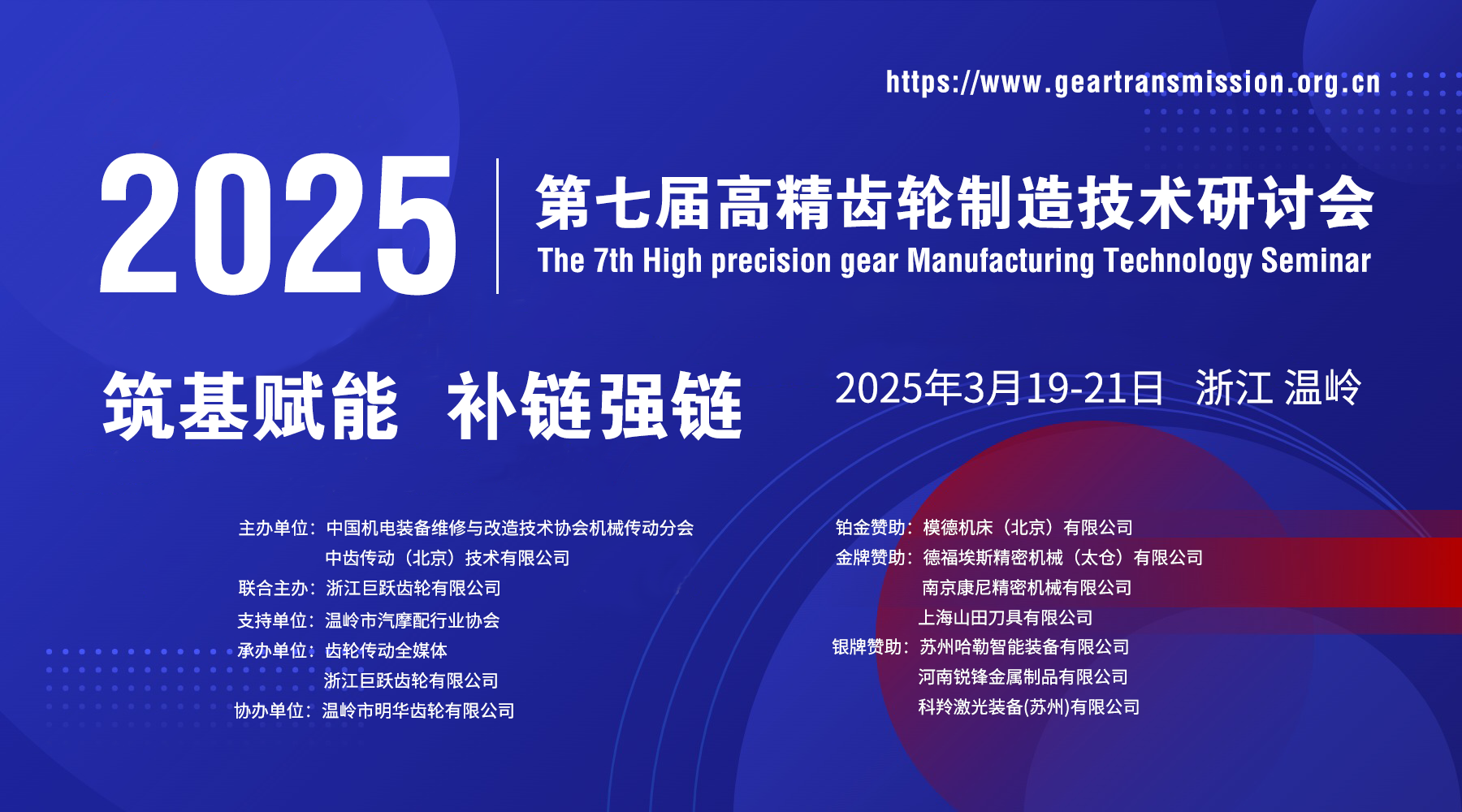 由中國機電裝備維修與改造技術協會機械傳動分會、中齒傳動(北京)技術有限公司主辦,浙江巨躍齒輪有限公司聯合主辦的“第七屆高精齒輪制造技術研討會”定于2025年3月19-21日在浙江溫嶺召開,截至目前參會人數已接近500人。現將已確定參會企業名單公布如下:
