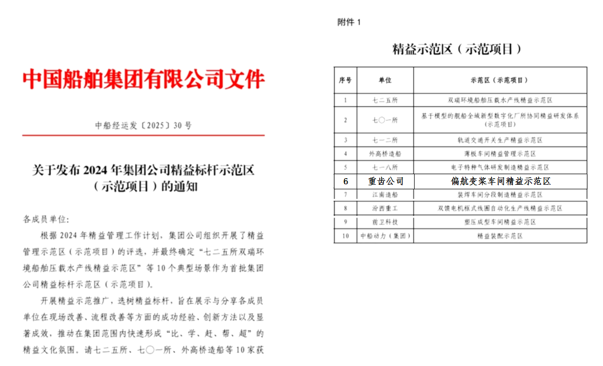通過精益實(shí)踐,重齒公司打造的偏航變槳精益示范區(qū)典型場(chǎng)景被確定為集團(tuán)公司首批十個(gè)精益標(biāo)桿示范區(qū)之一,并在集團(tuán)公司對(duì)2024年度各二級(jí)管理單位精益管理等級(jí)評(píng)定中,重齒公司在集團(tuán)79家二級(jí)管理單位(價(jià)值創(chuàng)造類企業(yè))精益管理等級(jí)評(píng)價(jià)中排名第三位。