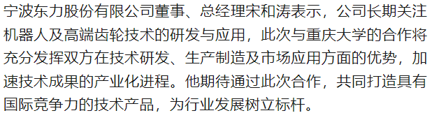 重慶大學(xué)與寧波東力攜手共促機器人關(guān)節(jié)及對構(gòu)齒輪技術(shù)應(yīng)用開發(fā)