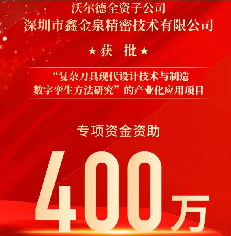 近日,鑫金泉牽頭申報的2025年度深圳市承接國家重大科技項目之“復雜刀具現代設計技術與制造數字孿生方法研究”的產業化應用項目,成功獲批立項(項目編號:深科創資[2024]70號),并獲400萬元專項資金資助!