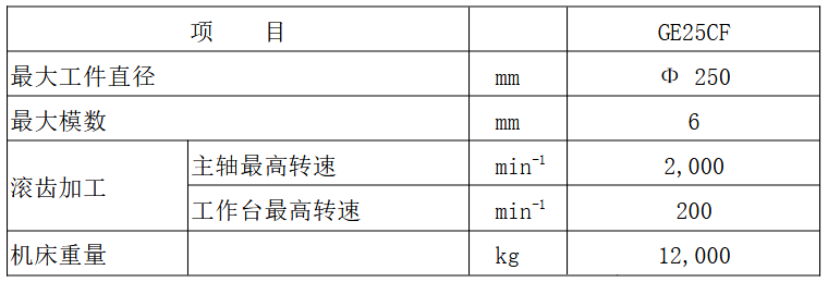 切削倒角一體化滾齒機“GE25CF”的主要規(guī)格