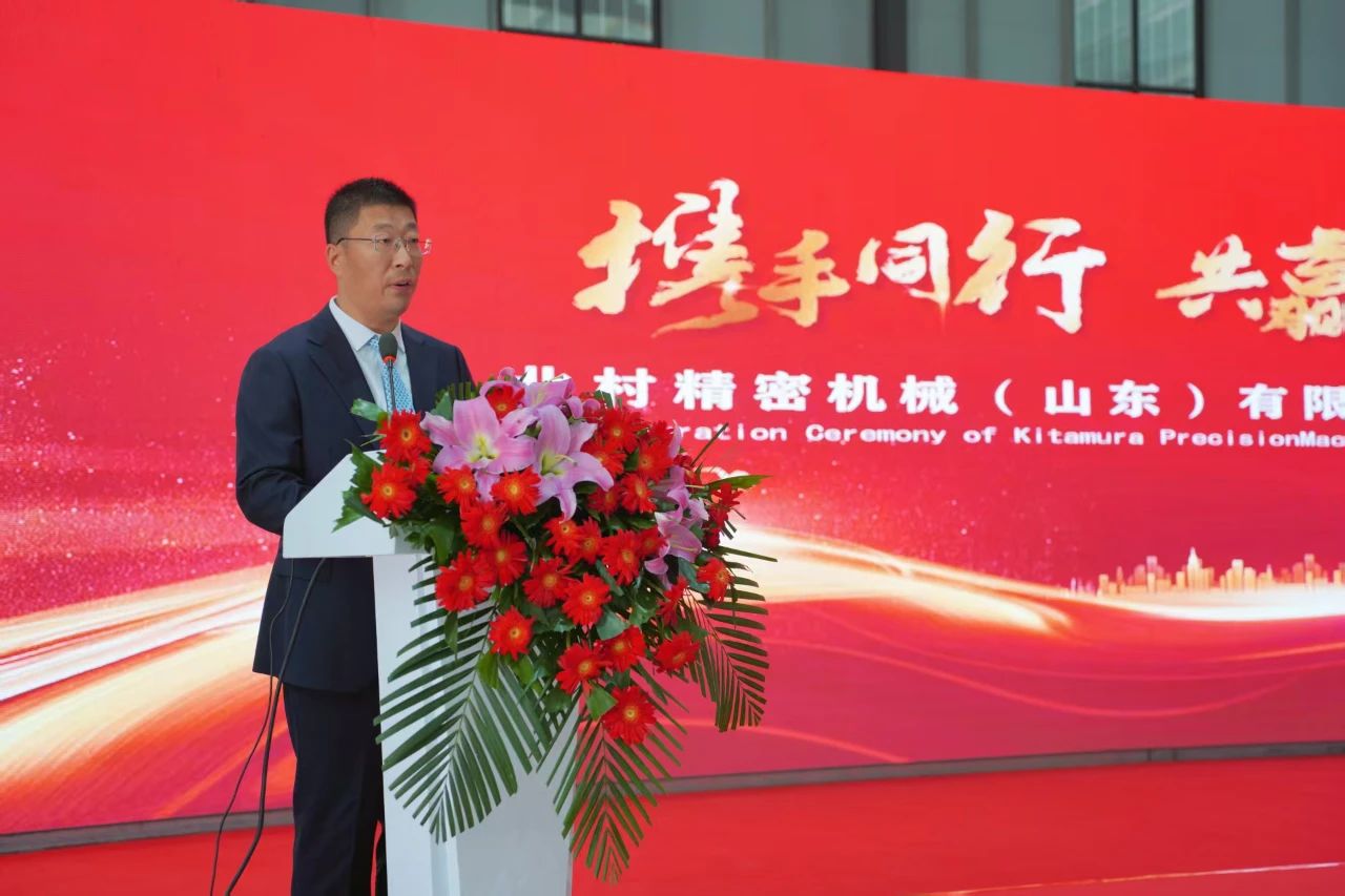 儀式在熱烈的氛圍中拉開帷幕,普集街道辦書記陳濤先生首先致辭。陳書記對北村精密機械(山東)有限公司的落成表示熱烈祝賀,他指出:“北村機械株式會社作為全球領先的精密機械制造企業,其技術中心和應用中心的成立,將為章丘區乃至整個山東省的智能制造產業注入強大動力。我們期待與北村機械攜手,共同推動區域經濟的高質量發展。”
