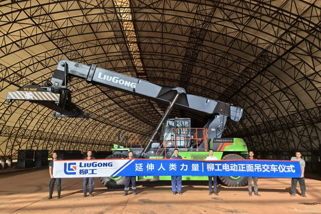 其中,本次交付的柳工E系列電動叉車以其皮實耐用、操控舒適、高效節能的特性,成為客戶物流升級新能源首選。電動正面吊的重載搬運能力再提升,搭配電動裝載機、挖掘機與高空作業車,進一步形成從物料裝卸到工程施工的全鏈條電動化作業體系。
