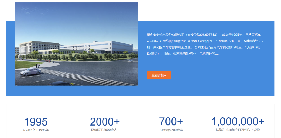 重慶秦安機(jī)電股份有限公司(秦安股份),成立于1995年,是從事汽車發(fā)動(dòng)機(jī)動(dòng)力系統(tǒng)核心零部件和變速器關(guān)鍵零部件生產(chǎn)配套的專業(yè)廠家,是集鑄造和機(jī)加一體化的汽車零部件制造企業(yè)。 公司主要產(chǎn)品為汽車發(fā)動(dòng)機(jī)氣缸蓋、氣缸體(鑄鐵/鑄鋁)、曲軸,變速器箱體/殼體,電機(jī)殼體等,并且已經(jīng)開始涉足復(fù)雜結(jié)構(gòu)件。