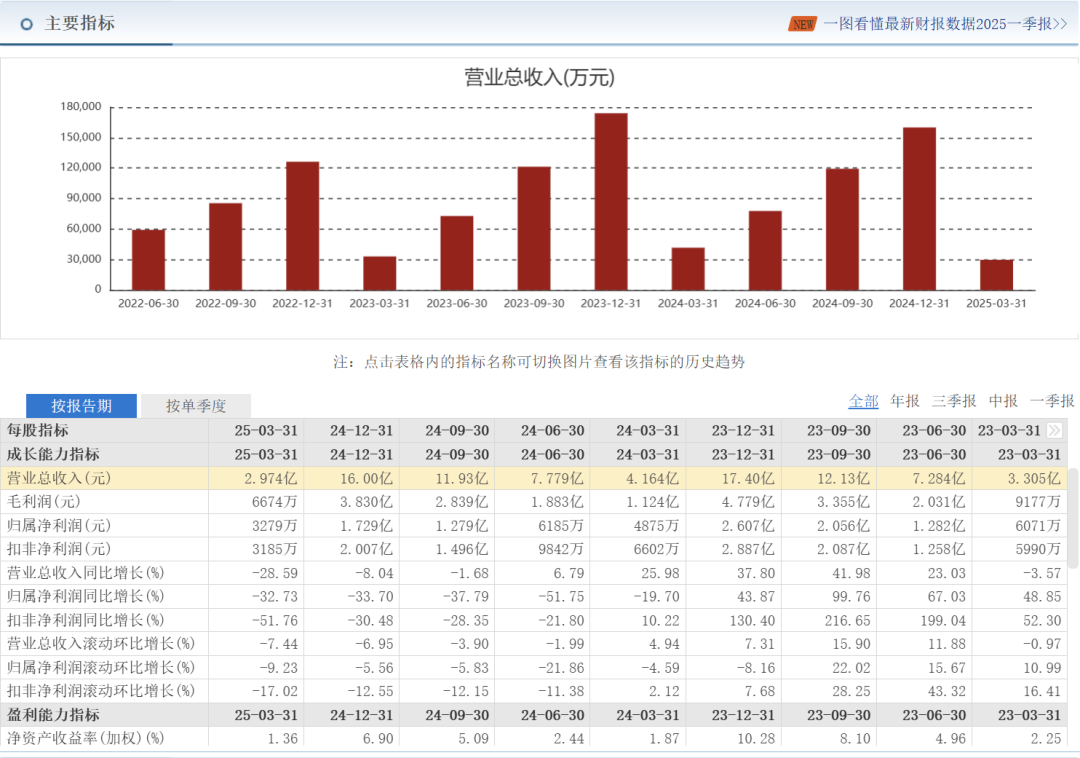 2025年一季度,公司實(shí)現(xiàn)收入2.974億元,同比-28.59%,扣非凈利潤3185萬元,同比大幅下滑-51.76%,仍不止下滑趨勢。