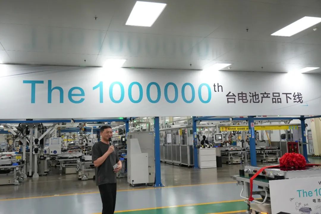 2025年6月23日,威睿電動第100萬臺電池產品下線儀式在寧波電池工廠舉行,管理層及員工代表共計100余人共同見證這一重要時刻。寧波威睿負責人阮鷗向蒞臨的各位同學表示熱烈歡迎,并高度贊揚了全體員工的奮斗精神與卓越的工作成果。進一步強調了對電池產品未來的堅定信心,并勉勵全員朝著下一個百萬目標攜手奮進。