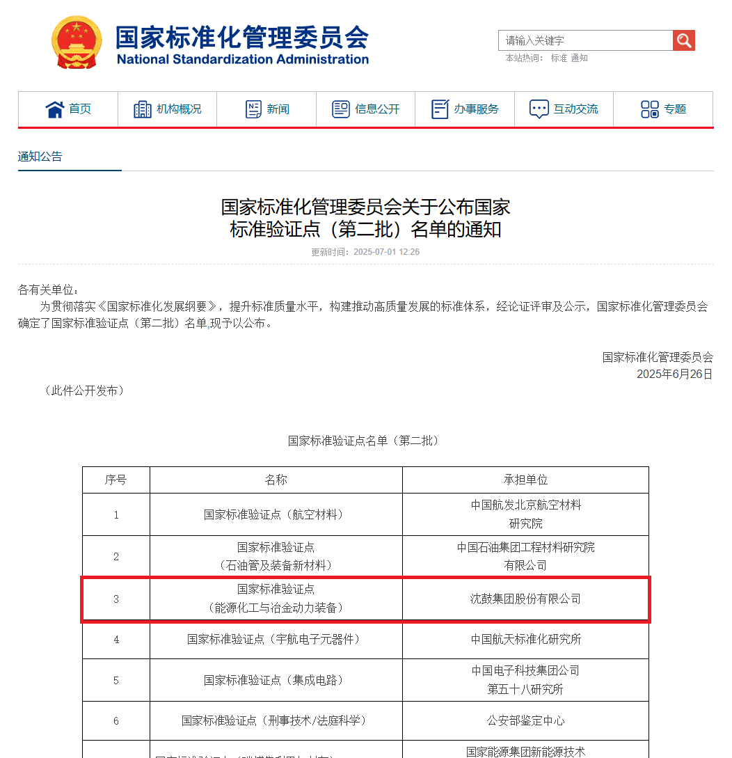近日,國(guó)家標(biāo)準(zhǔn)化管理委員會(huì)公布國(guó)家標(biāo)準(zhǔn)驗(yàn)證點(diǎn)(第二批)名單,在35家新確定的國(guó)家標(biāo)準(zhǔn)驗(yàn)證點(diǎn)中,沈鼓集團(tuán)成功獲批能源化工與冶金動(dòng)力裝備領(lǐng)域國(guó)家標(biāo)準(zhǔn)驗(yàn)證點(diǎn),成為目前我國(guó)在該領(lǐng)域唯一一家國(guó)家標(biāo)準(zhǔn)驗(yàn)證點(diǎn)。這不僅是對(duì)沈鼓多年來深耕標(biāo)準(zhǔn)化領(lǐng)域的褒獎(jiǎng)與認(rèn)可,更賦予了沈鼓在能源化工與冶金動(dòng)力裝備領(lǐng)域標(biāo)準(zhǔn)驗(yàn)證的使命與責(zé)任。