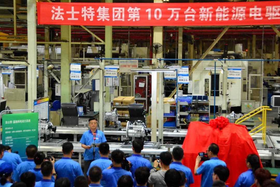 7月10日,法士特第10萬臺新能源電驅(qū)動總成在寶雞廠區(qū)順利下線。法士特集團黨委書記、董事長馬旭耀出席儀式并致辭,黨委副書記、總經(jīng)理劉義主持儀式并介紹下線產(chǎn)品有關(guān)情況。