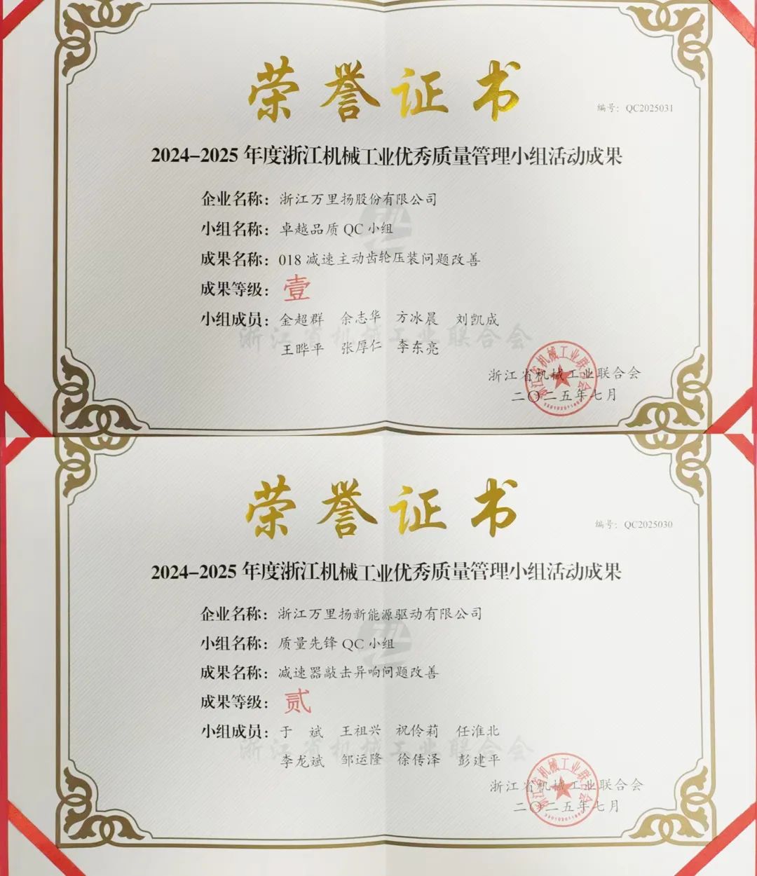 近日,由浙江省機械工業聯合會主辦的“2024-2025年度浙江省機械工業群眾性質量管理活動成果交流學習會”在嘉興舉行,萬里揚選送的QC成果表現優異,斬獲一等獎1項、二等獎1項。