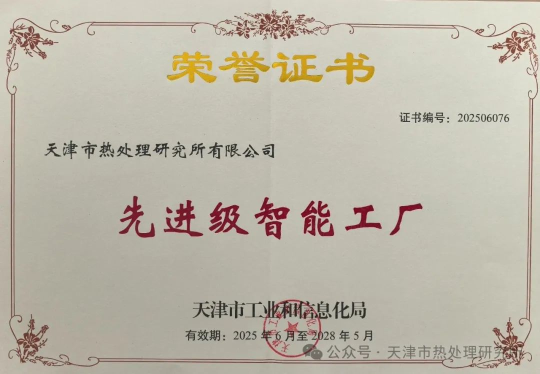 近日,天津市工業和信息化局正式公布了2025年首批先進級智能工廠名單,天津市熱處理研究所有限公司憑借“數字信息化熱處理智能工廠”經評審成功入選,成為天津市熱處理行業智能化升級的典范。