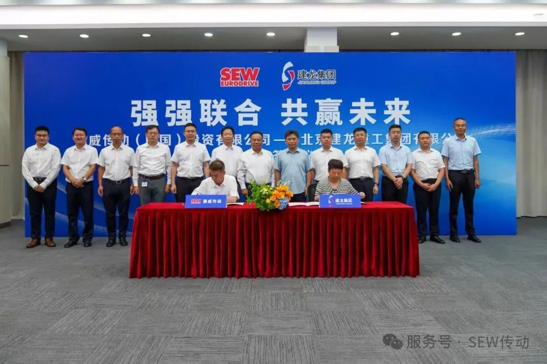 8月19日下午,北京建龍重工集團有限公司(以下簡稱“建龍集團”)與賽威傳動(中國)投資有限公司(以下簡稱“SEW中國”)在SEW天津總部簽署戰略合作框架協議,建龍集團副總裁黃丹和SEW天津公司常務副總經理高瓊華分別代表雙方簽署協議。