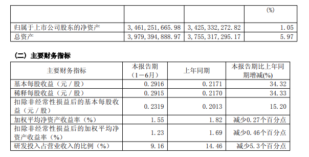 盈利能力方面,該公司毛利率為34.77%,同比下降5.62個百分點;凈利率為21.91%,較上年同期上升0.23個百分點,顯示出公司在成本控制與產品定價策略上的有效性。