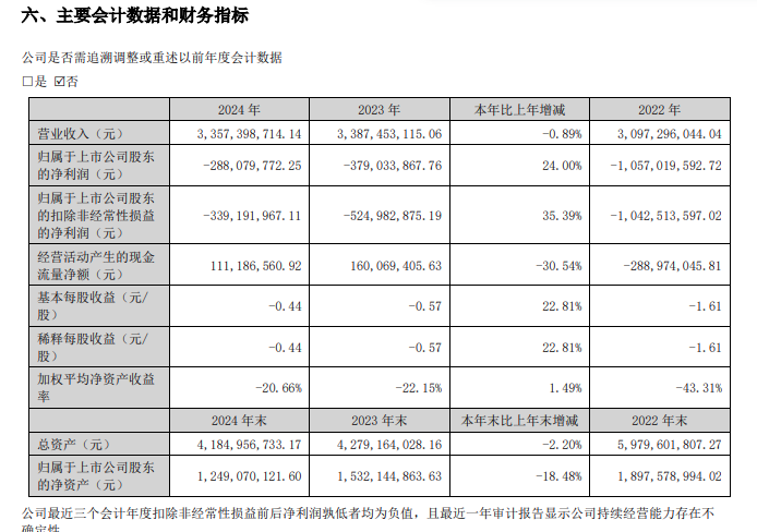 單從2024年來(lái)看,新時(shí)達(dá)實(shí)現(xiàn)營(yíng)業(yè)總收入33.57億元,同比下降0.89%;歸屬凈利潤(rùn)為-2.88億元,同比減虧24.00%;扣非凈利潤(rùn)為-3.39億元,同比減虧35.39%;經(jīng)營(yíng)活動(dòng)產(chǎn)生的現(xiàn)金流量?jī)纛~為1.11億元,同比下降30.54%。