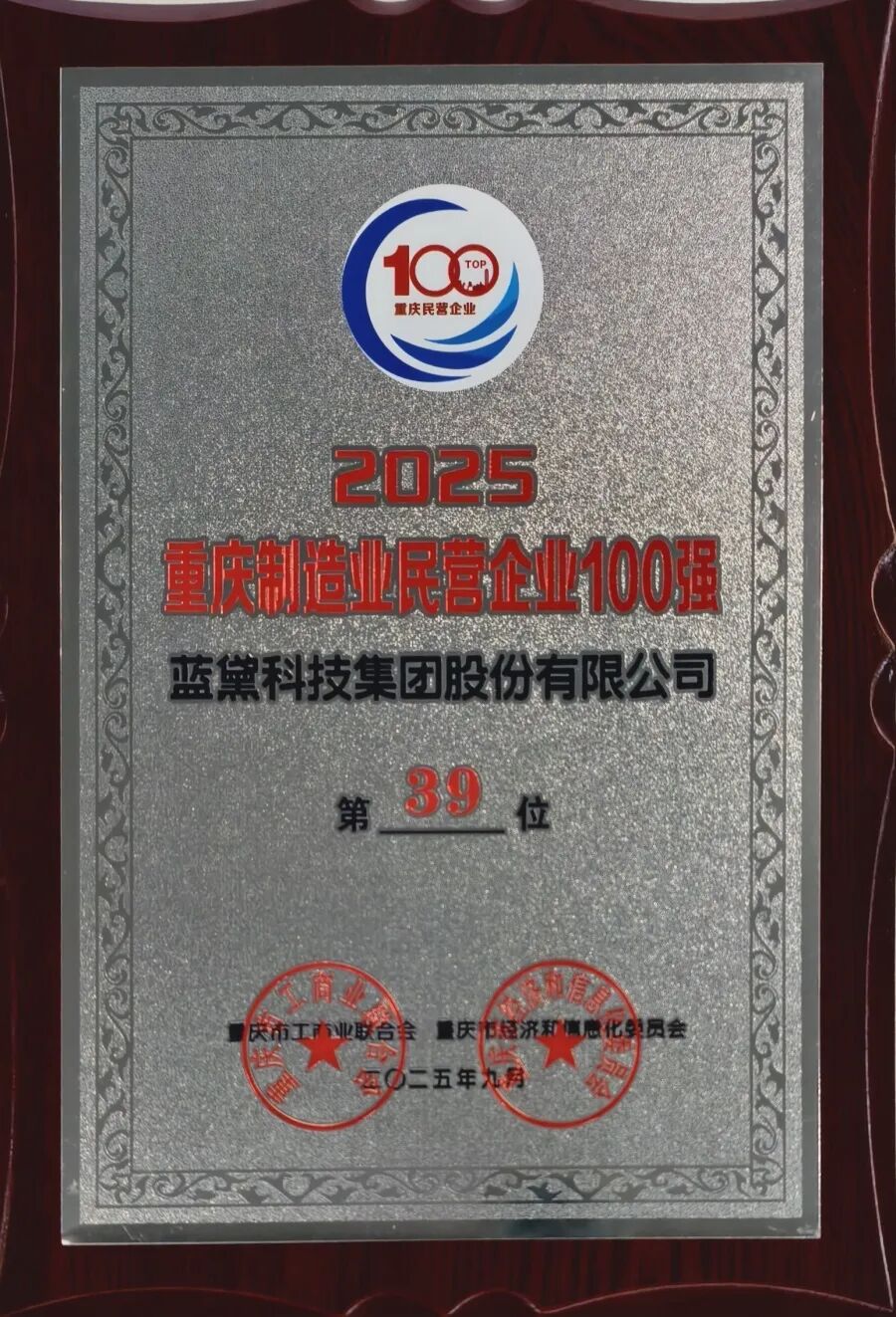 2025年9月19日,以“改革促發展 創新鑄輝煌”為主題的2025重慶民營企業100強發布會在南岸區盛大啟幕。大會聚焦重慶民營經濟發展成果,重磅發布了“2025重慶民營企業100強”“2025重慶制造業民營企業100強”兩大核心榜單。其中,藍黛科技集團股份有限公司表現亮眼。不僅連續第五年穩居雙榜之列,并實現了排名的大幅進階,相較2024年榜單,藍黛科技在“重慶民營企業100強”和“重慶制造業民營企業100強”排名分別攀升13位和6位。以實打實的成長速度,印證了企業在改革創新與產業深耕中的硬實力。