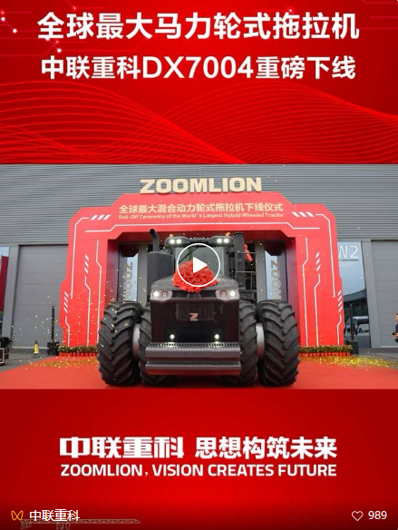 此次下線的全球最大馬力輪式拖拉機DX7004,融合了行業領先的新能源和物聯智控技術,其數字化底盤、核心零部件及控制系統等均由中聯重科自主開發。該產品專為超大規模農場的高強度、高效率作業而設計,擁有更強大的牽引力、更低的燃料消耗和更環保的排放表現,能提供前所未有的高效、經濟作業方案,為全球綠色農業發展提供有力支撐。