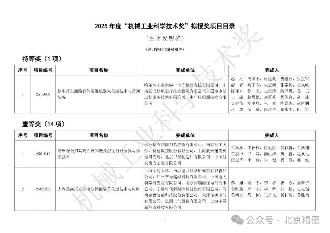 附2025年度“機械工業(yè)科學技術(shù)獎”擬授獎項目目錄
