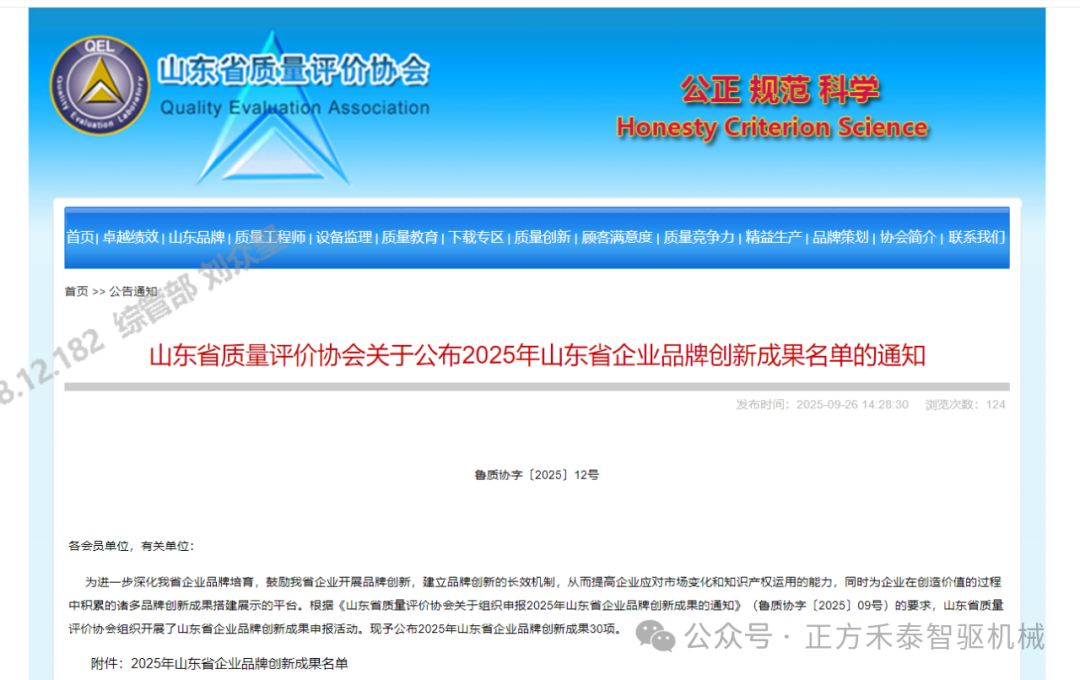 2025年9月26日,山東省質(zhì)量評(píng)價(jià)協(xié)會(huì)發(fā)布2025年山東省企業(yè)品牌創(chuàng)新成果名單,山東正方禾泰智驅(qū)機(jī)械有限公司《礦業(yè)車輛車橋智能化及診斷系統(tǒng)-電驅(qū)橋》項(xiàng)目入選“產(chǎn)品服務(wù)創(chuàng)新成果品牌”。
