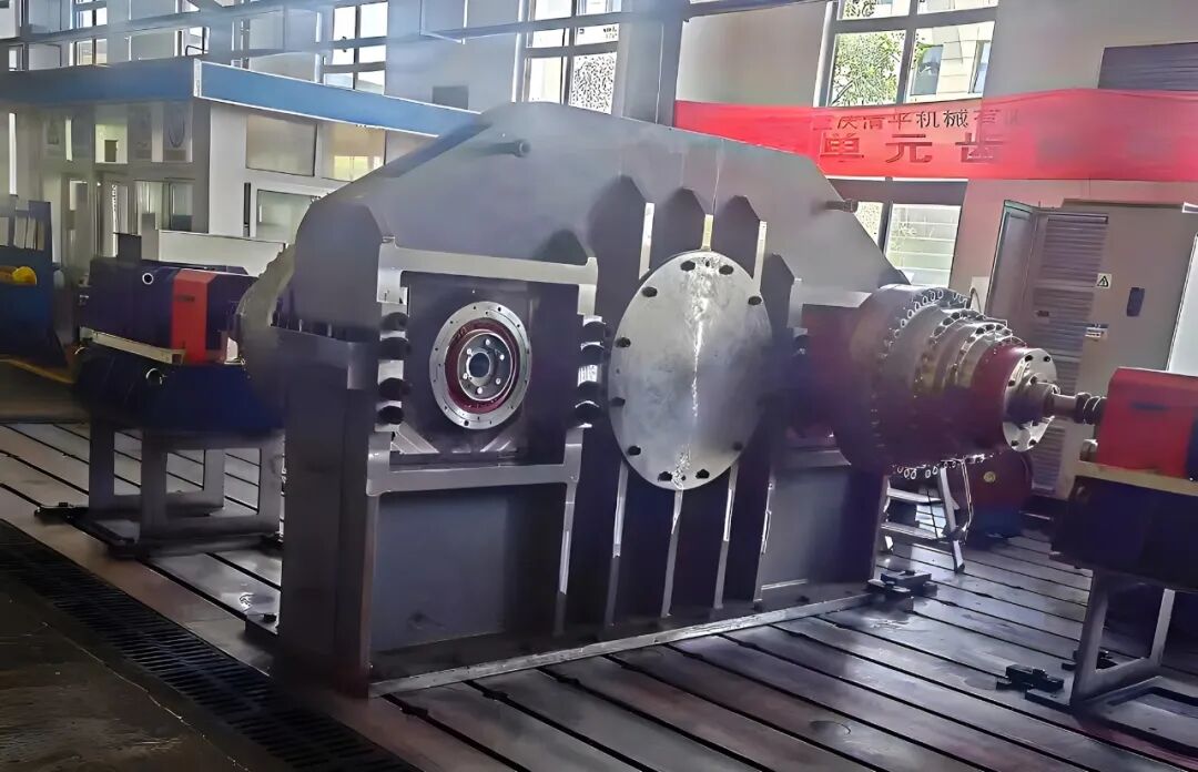 該產(chǎn)品額定載荷300KN.m,風(fēng)暴載荷550KN.m,對精度、穩(wěn)定性有嚴(yán)苛的要求。為順利完成生產(chǎn)任務(wù),公司組建專業(yè)團(tuán)隊(duì),針對復(fù)雜部件的生產(chǎn)工藝反復(fù)研討、優(yōu)化方案,以高標(biāo)準(zhǔn)、嚴(yán)要求推進(jìn)各項(xiàng)工作。現(xiàn)場檢驗(yàn)、技術(shù)員、現(xiàn)場試驗(yàn)員等參試人員全程跟蹤監(jiān)測,齒輪箱總體運(yùn)行平穩(wěn),各項(xiàng)數(shù)據(jù)均符合設(shè)計(jì)指標(biāo),順利通過測試。