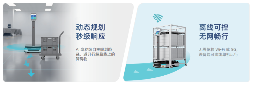 即使在無網(wǎng)絡(luò)的地下倉庫或偏遠區(qū)域,它也能離線運行,自主決策,徹底擺脫對5G、Wi-Fi和集群服務(wù)器的依賴。
