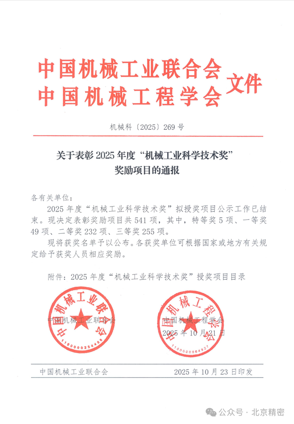 2025 年 10 月 23日,2025年度“機械工業科學技術獎”正式公布。北京工業大學石照耀教授團隊牽頭,邀博(北京)智能科技股份有限公司、深圳市兆威機電股份有限公司等單位參與的“機器人關節性能測試與提升技術及裝備”項目脫穎而出,獲評技術發明獎一等獎。這是機械工業領域首個機器人關節科技發明獎。機械工業科學技術獎是經國家科學技術部批準,由中國機械工業聯合會和中國機械工程學會共同設立,并根據有關規定,在國家科技獎勵主管部門登記的面向全國機械行業的綜合性科技獎項。