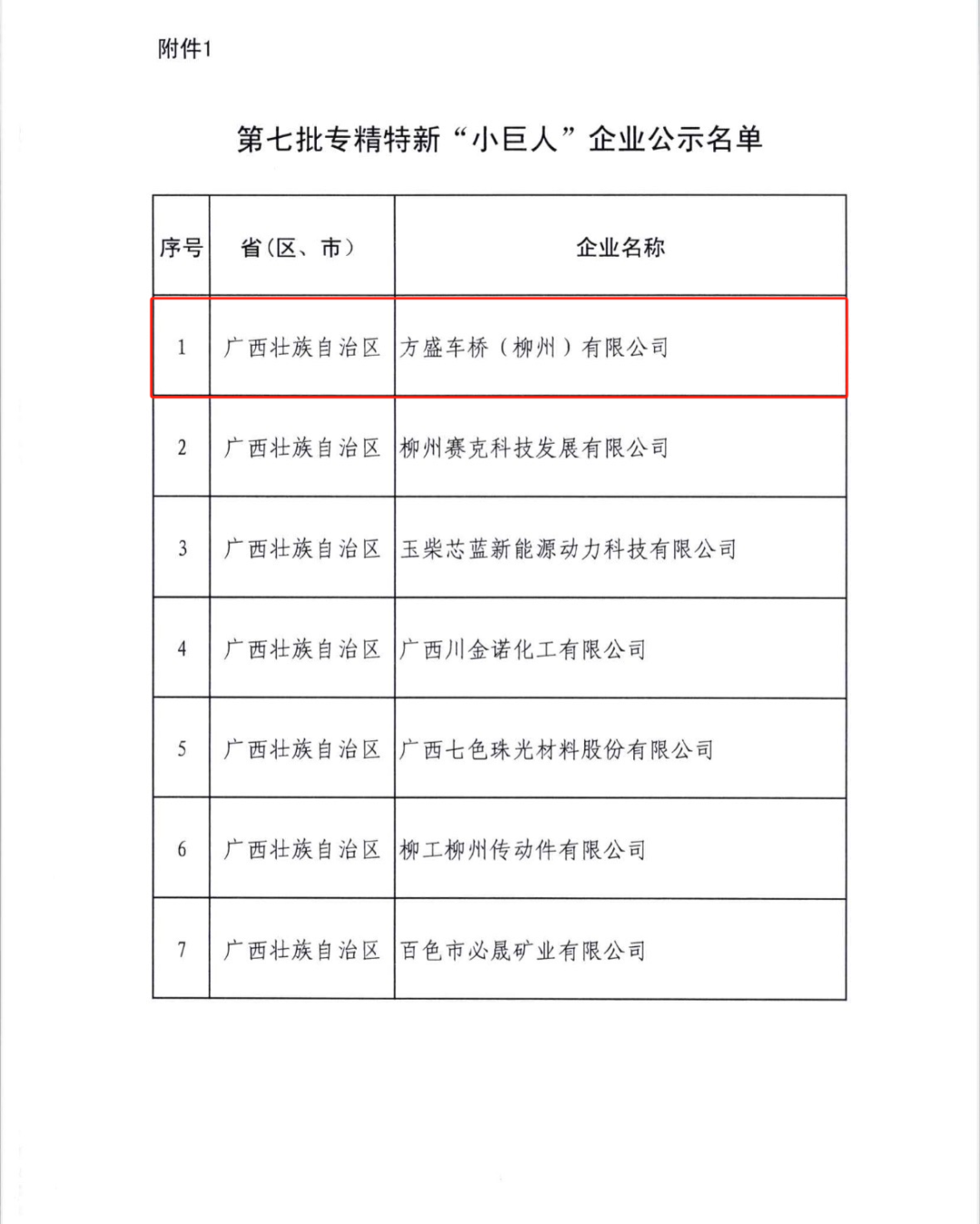 近日,工業和信息化部正式公布2025年第七批國家級專精特新“小巨人”企業名單。方盛車橋(柳州)有限公司憑借在商用車車橋領域突出的技術創新能力與細分市場優勢,成功通過認定,躋身這一代表國家產業競爭力的榮譽榜單。