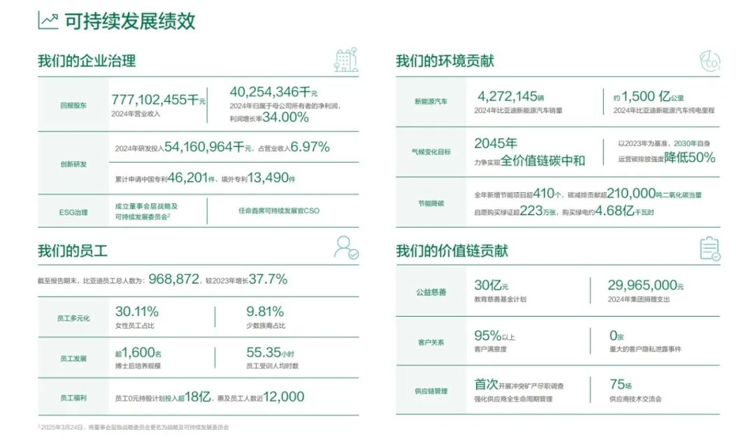 通過以上卓越的ESG實(shí)踐,我們不僅在評級分?jǐn)?shù)上取得突破性進(jìn)展,亦在今年榮獲福布斯中國“2025中國ESG 50”榜單、央視“中國ESG上市公司先鋒100”榜單等多項(xiàng)榮譽(yù),成為新能源汽車行業(yè)ESG標(biāo)桿。這些認(rèn)可既是我們響應(yīng)國家綠色低碳政策、踐行全球可持續(xù)發(fā)展承諾的體現(xiàn),也彰顯了比亞迪將ESG融入戰(zhàn)略、打造核心競爭力的決心。