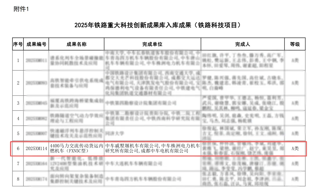12月8日,國家鐵路局2025年度鐵路重大科技創(chuàng)新成果入庫名單公布,中車戚墅堰公司自主研發(fā)的4400馬力貨運(yùn)內(nèi)燃機(jī)車(復(fù)興N5C型)成功入選,且獲評(píng)最高等級(jí)A類,這標(biāo)志著該機(jī)型獲國家行業(yè)主管部門權(quán)威認(rèn)可,躋身國內(nèi)鐵路貨運(yùn)裝備頂尖行列。
