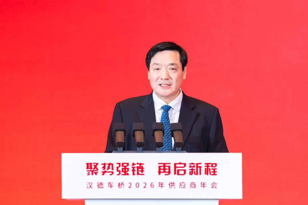 陜重汽總經(jīng)理支保京代表陜汽集團對漢德車橋近年來取得的成績表示高度肯定。他指出:漢德車橋作為陜汽集團產(chǎn)業(yè)鏈的核心一環(huán),為整車市場的突破提供堅實支撐,這份成績的背后,凝結(jié)著每一位供應(yīng)商伙伴的智慧與付出。面向“十五五”,陜汽將把握新能源與國際化機遇,全力沖刺行業(yè)第一梯隊。2026年,希望各位供應(yīng)商深化“同設(shè)計、同驗證、同攻關(guān)、同發(fā)展”的四同理念,共守質(zhì)量生命線,共建高安全、強韌性供應(yīng)鏈體系,協(xié)同實現(xiàn)“十五五”開門紅,開創(chuàng)高質(zhì)量發(fā)展新篇章。