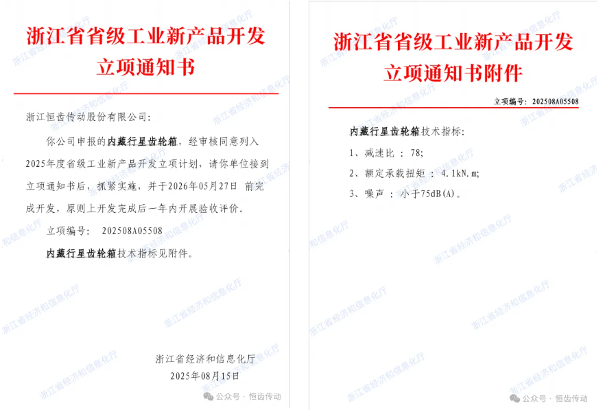 “內藏行星齒輪箱”與“電動貨車換電用起升減速機”同期通過省級認定,是對恒齒傳動創新能力的充分肯定。恒齒傳動將繼續深耕傳動技術領域,以市場需求為導向,以技術創新為引擎,不斷推出更多高效、智能的傳動解決方案,為傳動智造與綠色工業發展貢獻專業力量。