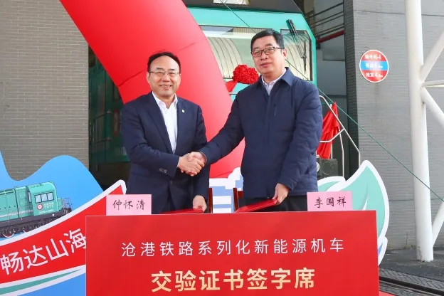 中車戚墅堰公司副總經理仲懷清和滄港鐵路公司運輸總監李國祥作為雙方公司代表,簽署了機車交驗證書。