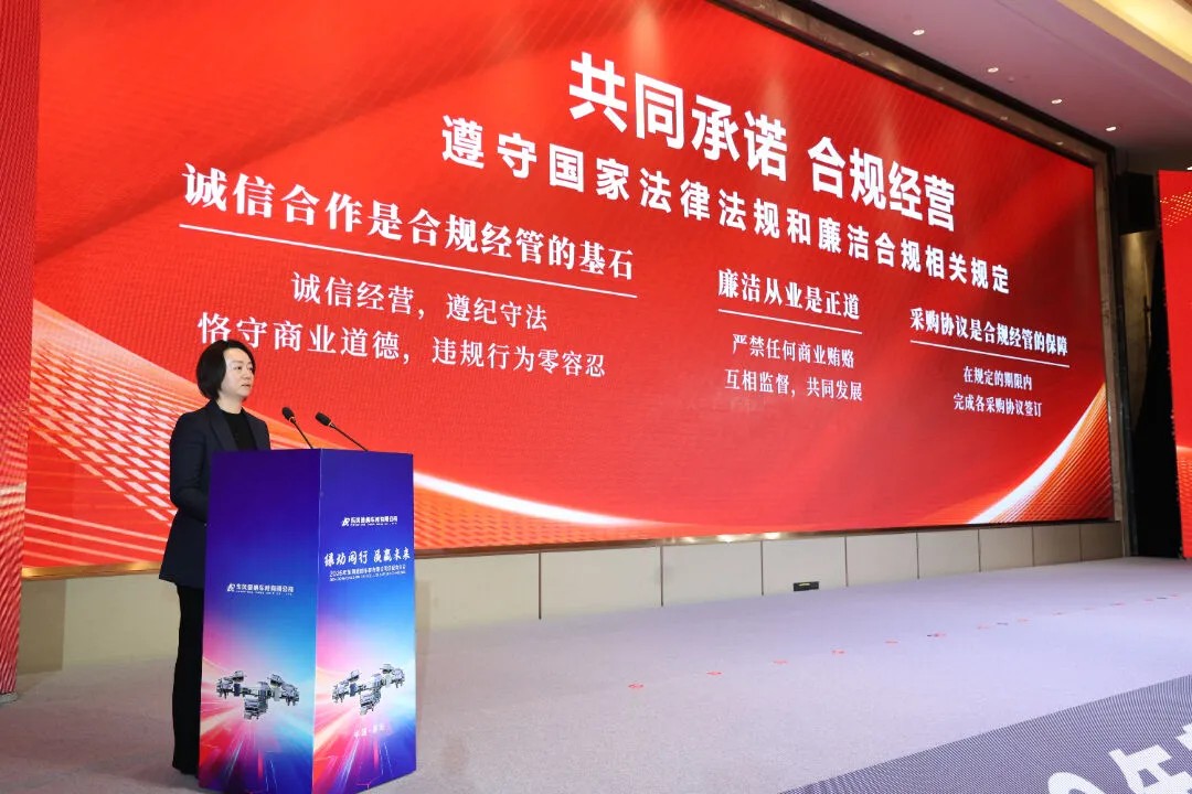 東風(fēng)德納車橋紀(jì)委書(shū)記張凌云表示,廉潔是溫暖的守護(hù),守護(hù)產(chǎn)業(yè)鏈的共同事業(yè),照亮前行的道路。她向戰(zhàn)略伙伴倡議:以廉潔為基石,共赴“綠動(dòng)同行,質(zhì)贏未來(lái)”的征程,同書(shū)“廉潔致遠(yuǎn),‘橋’見(jiàn)未來(lái)”的新篇。