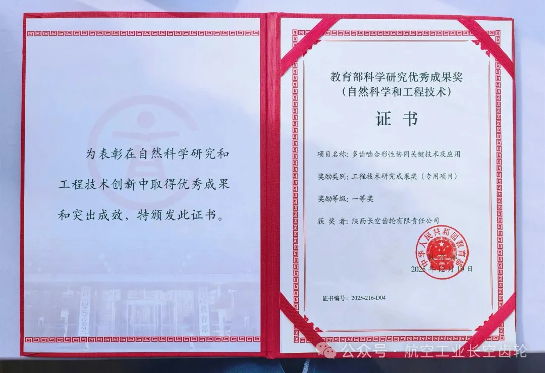 近日,2025年度教育部科學(xué)研究優(yōu)秀成果獎(自然科學(xué)和工程技術(shù))獲獎名單發(fā)布,由陜西長空齒輪有限責(zé)任公司作為核心參與單位之一完成的“多齒嚙合形性協(xié)同關(guān)鍵技術(shù)及應(yīng)用”項目,榮獲工程技術(shù)研究成果獎一等獎。此次獲獎,標(biāo)志著長空齒輪在精密齒輪傳動基礎(chǔ)研究與關(guān)鍵技術(shù)應(yīng)用領(lǐng)域取得的成就獲得了國家級層面的高度認(rèn)可。