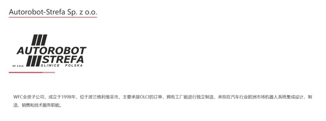 此次獲得訂單的Autorobot公司,是埃夫特在2017年收購的意大利機器人系統集成商W.F.C集團旗下的波蘭子公司,其在汽車白車身焊接領域擁有超過20年的經驗。