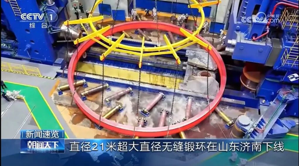 近日,央視《朝聞天下》報道,一件直徑達21米的超大直徑無縫鍛環在山東濟南成功下線。該鍛環采用一體成形工藝,將主要應用于水利水電、高端煉化等國家重大裝備領域,標志著我國在高端鍛造領域實現跨越式突破,技術水平邁入全球領先行列。
