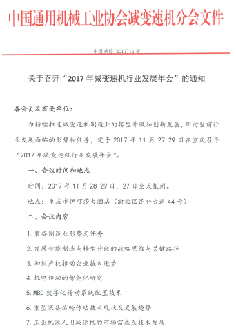關于召開“2017年減變速機行業(yè)發(fā)展年會”的通知